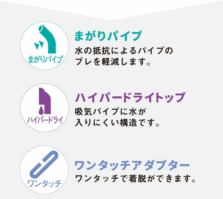 ・ マスクへの着脱が簡単、確実にセットできるワンタッチアダプター
