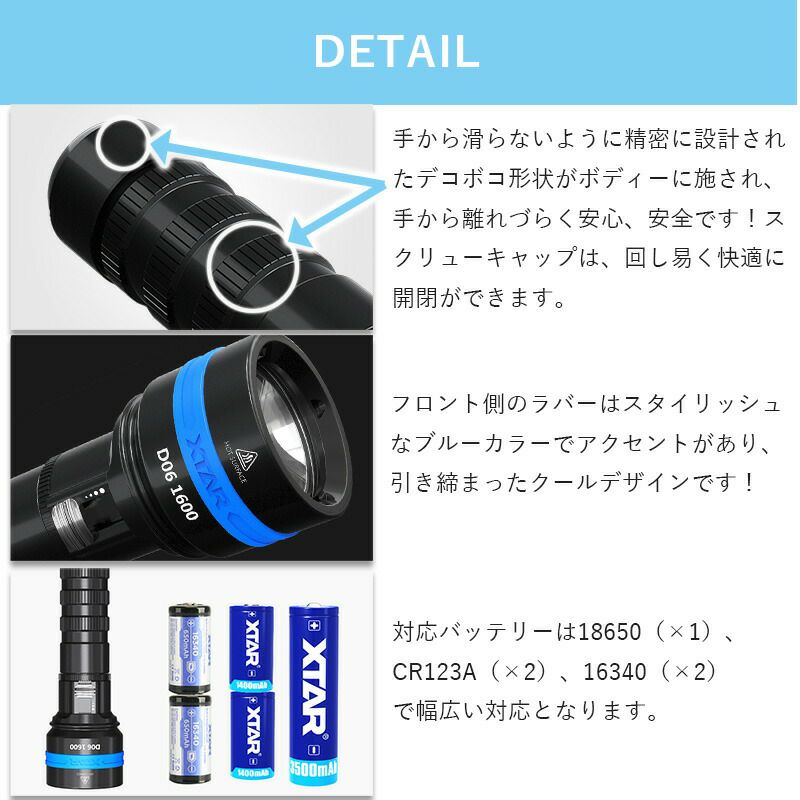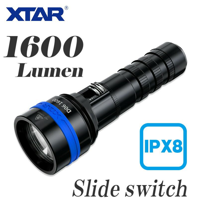 大光量1000ルーメン&スライド調光スイッチ!思った光量で洞窟、岩場もスポット照射!照射距離280m&耐圧深度100mのハンディーサイズ水中ライト! 【XTAR】 DS1 (w/o BT Charger)
