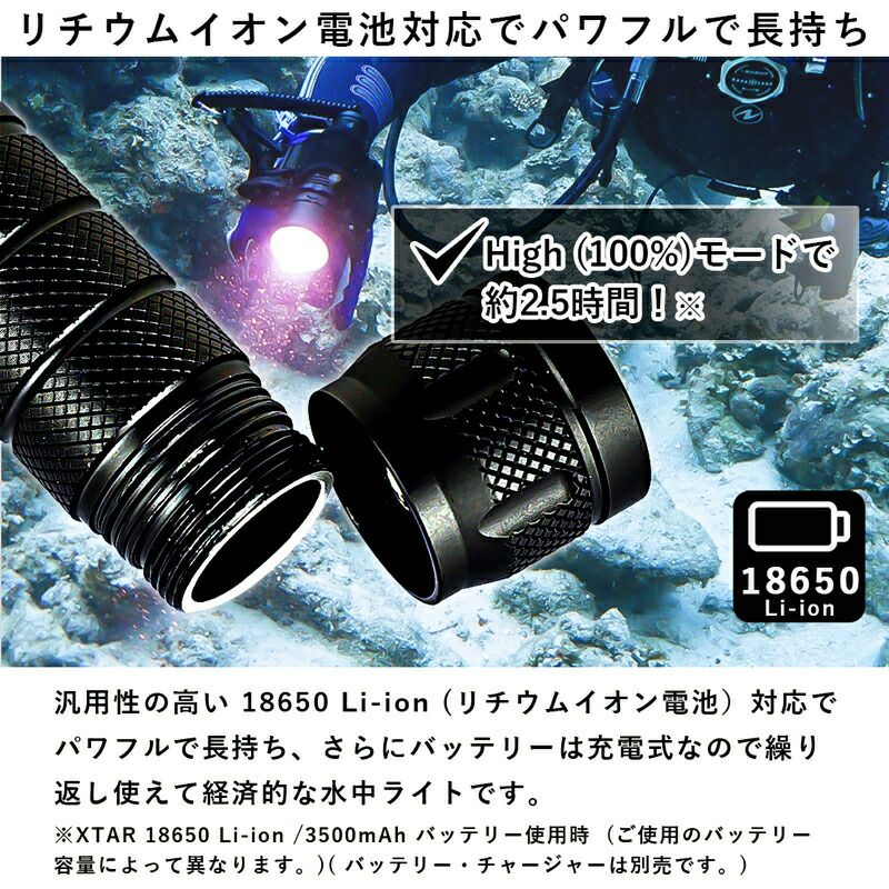 High → Low → SOS の3つのモードが使えるスタンダードモデル。80m防水。