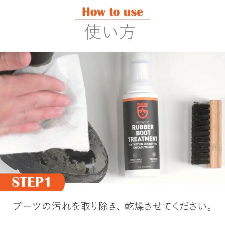 使用方法 1) ブーツの汚れを取り除き、 乾燥させてください。