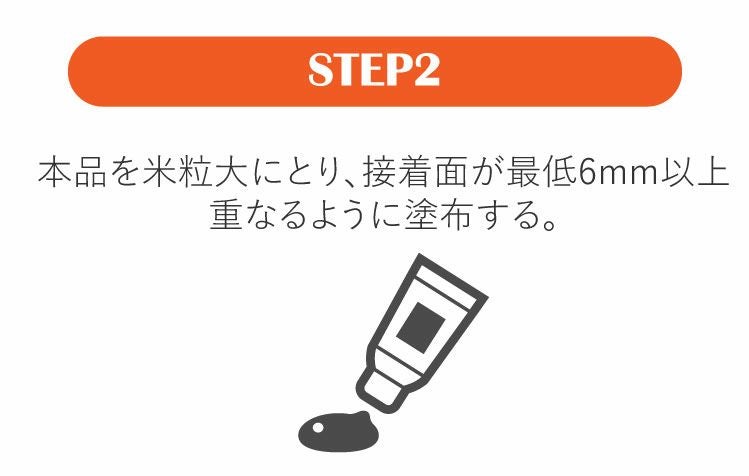 2.本品を米粒大にとり、接着面が最低6mm以上重なるように塗布する