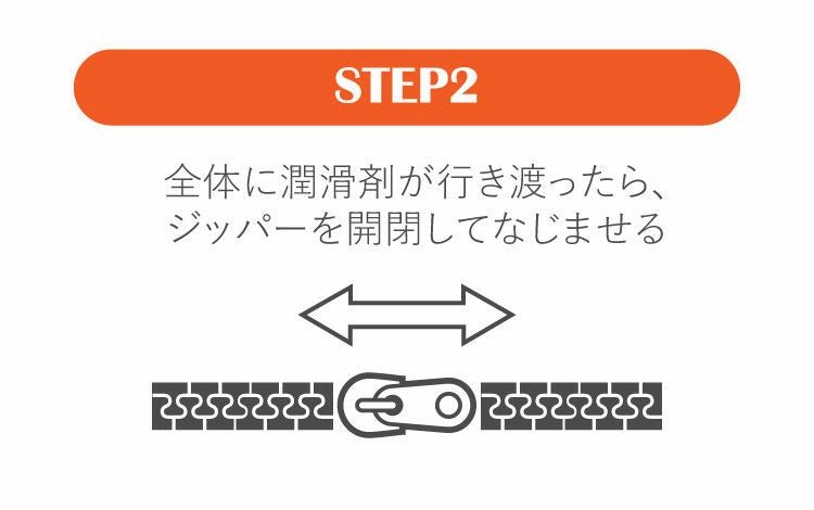 2.全体に潤滑剤が行き渡ったら、ジッパーを開閉してなじませる