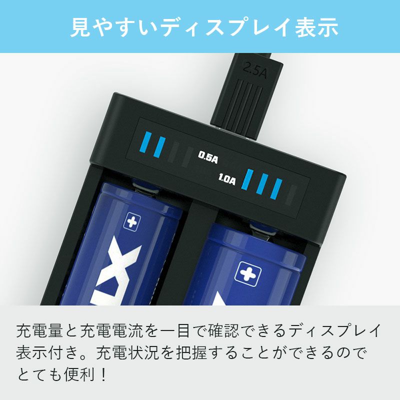 他の画像を見る 18650、26650、単3、単4などの多様な電池に対応したUSB充電器。充電状況が確認できるディスプレイ搭載。高速充電。 【XTAR】 VC2SL メーカー希望小売価格 ¥ 4,587 ¥ 4,587 税込 在庫切れ 詳細を見る お気に入りに登録する